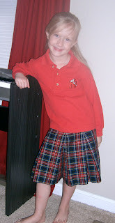 Haylee looks adorable. I’m thinking with girls like ours, uniforms will ease the Mommy-Daughter outfit drama that plagues so many daily!