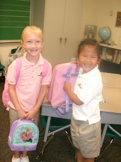 Our year is in full swing and things are rolling along at a swift pace. Haylee is thoroughly enjoying first grade, and I am adjusting fairly well to her more regular routine of nightly homework and real tests! It’s been nice having her right across the hall this year as well as in my Computer class once a week! The first week of school I showed all the classes a picture of our family up on the screen, and when she saw it she kind of looked at me with a start with a stricken look on her face! I wasn’t quite sure what she thought about having Mommy as a teacher, but later she said that she did like it. That’s good to know… hopefully, it will last a few more years at least!