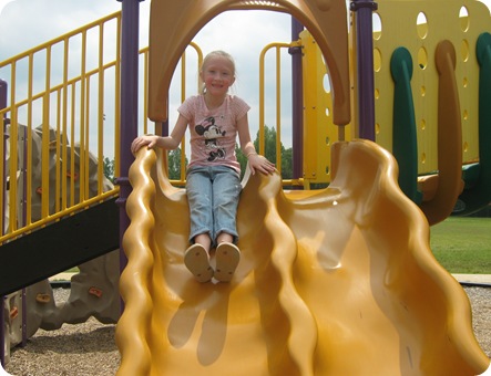 Pictures of our Park fun… It was royally H-O-T and there were noooo trees around the playground! It’s a new playground right by our house, but I seriously don’t know what they were thinking with the no trees. The kiddos had a ball despite the heat… :)